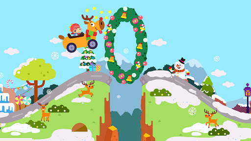- 9 different vehicles to choose from: Racecar, Police Car, Yellow Taxi, Pumpkin Wagon, Snail Racer, Reindeer Car, Ghost Car, Firetruck, and Winter Wagon.