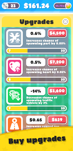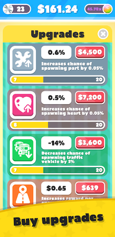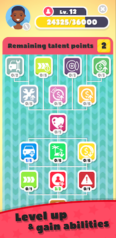 ◆ Level Up, Gain Special Abilities and Talents: As you progress, you'll gain special talents and abilities, such as invisibility, spawning more coins, or collecting extra lives. With each level you gain, you'll unlock more powerful upgrades. To speed up your progress and take your driving to the next level, you can purchase upgrades that give extra experience or increase the value of coins. The upgrades will help you improve faster and unlock new talents and abilities more quickly!