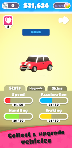 • Collect car parts to upgrade performance or change your car's appearance by choosing from a variety of skins