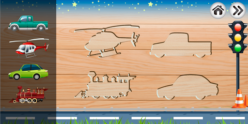 This educational game is very simple and straightforward. You just need to drag the transport to the appropriate silhouettes with your finger. If you click on a picture, it makes sounds. And when all the cars are assembled, you can pop the bubbles.