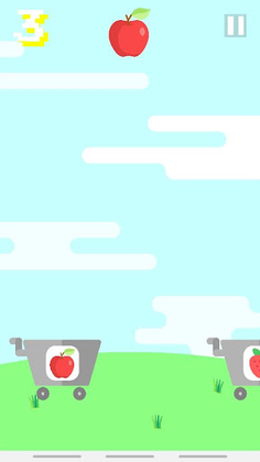 Tap right when the fruit on the cart is the same as the fruit in the air. Don't let any carts pass that are the same color as the fruit in the air.