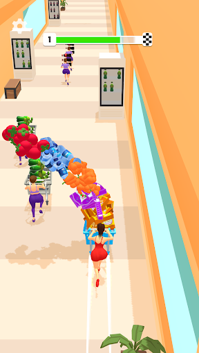 Exit the mart by taking as many items as possible without dropping them.
