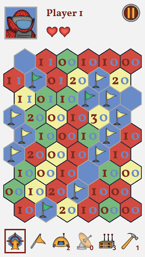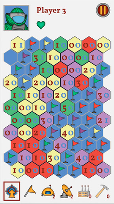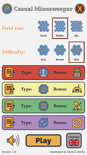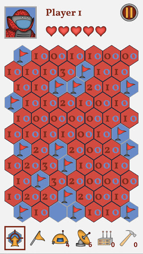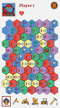 In this version of game the field consists of hexagons and, in addition to mines, contains specific tools that will slightly change the gaming experience.