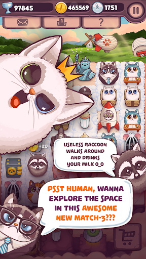 The premise of the game is simple: match the felines on the board to create even more spectacular furry friends, preparing them for interstellar travel. Cats and owls are integrated in groups of three to yield an even wider array of adorable characters. The ultimate goal is to advance the cats' space program and bring their dream of conquering space to life.