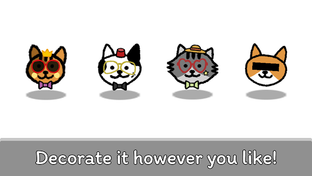 Mix things up by decorating the cats in your preferred style! There are a variety of glasses, hats, ball decorations, and bow tie items that can express the individuality of each cat. You can also change the color of the background.