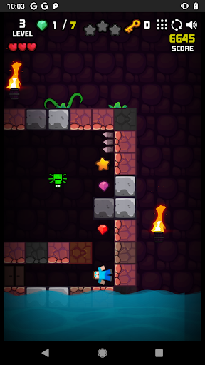 The main goal in Diamond Caves is to get out of a cave by collecting enough Emeralds and Diamonds for the exit to open.