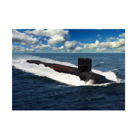 Enemy lurking beneath the ocean, in one of the grid squares; tap a grid location to drop a bomb on the enemy; if you miss the target, the sonar reveals potential location on the last outer periphery.