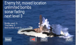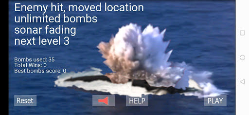 Whenever the enemy is hit, you move through the levels, with increasing difficulty: sonar fading or breaking, enemy relocating, and limited fire. In each new level, the enemy relocates to a new stationary position, but from level 6, it starts relocating within the same level as well.