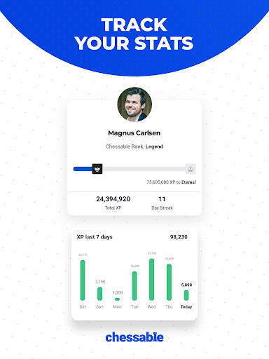 Track your progress, XP points, streak, and badges in your profile. With customizable settings, you can tailor Chessable to your learning style.