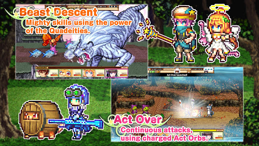Experience the game's exceptional variety by assigning up to three roles for each character to enhance their skills, effects, and even costumes. Charge special orbs during turn-based battles to use Act Over, launching up to four consecutive actions. Meanwhile, the vivid pixel art in this JRPG will leave you mesmerized!