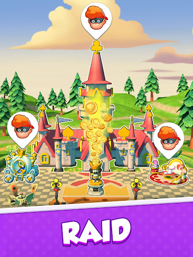 Spend spins, roll the dice then your fortune will come to you. Be it attack, raids, loot and shields. Your loot will be shown when you land on coins and gold sacks, thus you can make your orders and collect hammers to build your own kingdom. Win shields to guard your kingdom from others trying to attack you. Become the master of your kingdom with the most loot!