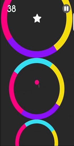The aim of the color ball game is to pass through the circles of the same color as the ball.