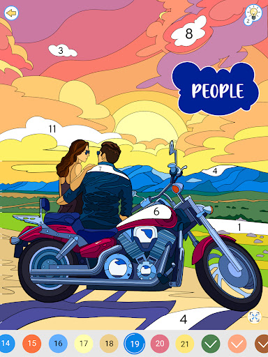 • Fun painting games on different themes: nature art, patterns, mosaics coloring by numbers for adults, animals coloring, princesses coloring, art, coloring games of gods. You can paint people, unicorn coloring book, car coloring book, people art, interior, relax with mandalas and others. You will have a great time with this type of art and artistic painting games!
