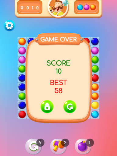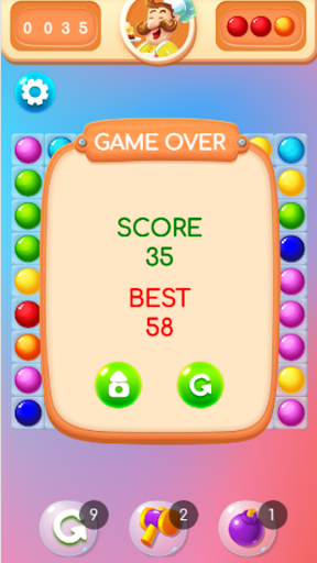 - Can use the bomb to erase many balls