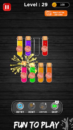 Continue sorting until all containers are filled with the correct puzzle colors. Each successfully completed level brings you closer to mastering the puzzle game.