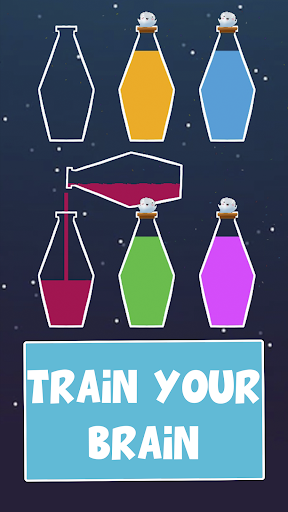 Your mission is to sort the colored water in the bottles till all colors are in the same bottle.