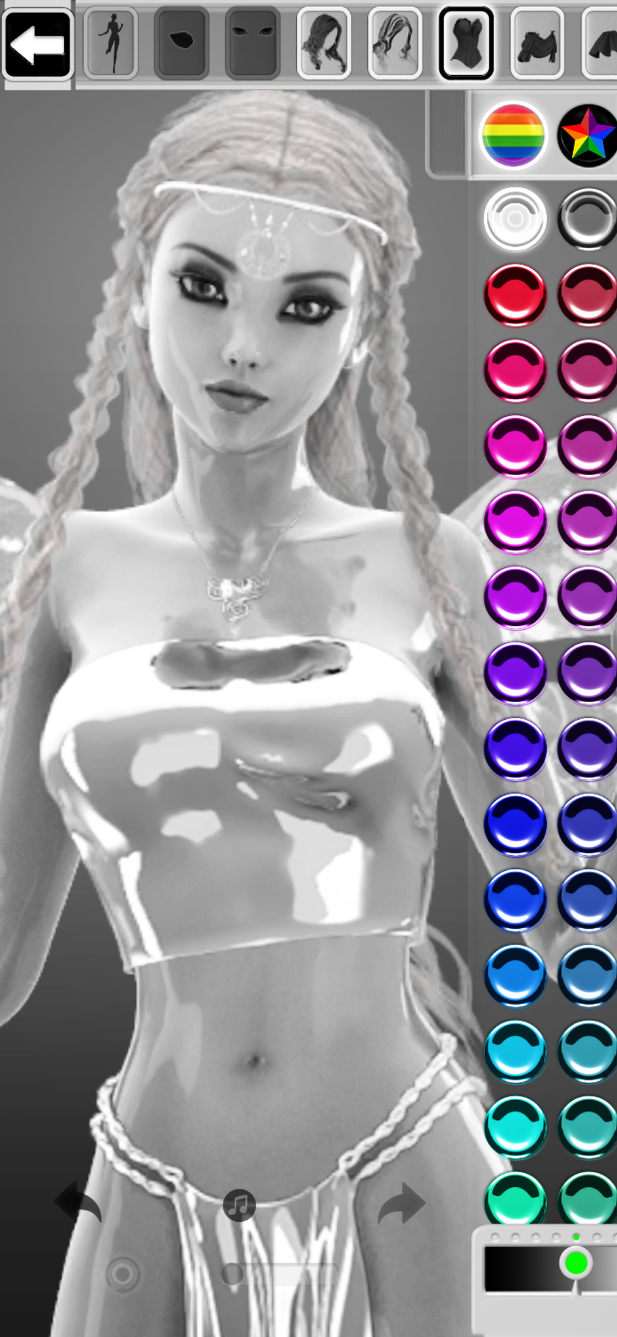 Start with a white bland style, then select the clothing design, & combine color with Realistic 3d gloss, shine, latex, and velvet. Easily swap between different suits, gloves, shoes and more! Combine and create your style and design. It’s your time to transform a dress up doll into your own fantasy creation in realistic 3D.