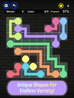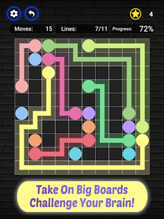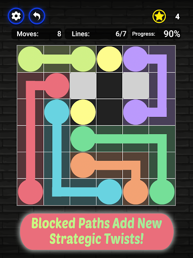 Each puzzle contains pairs of dots of the same color, and your goal is to connect the dots without crossing or overlapping the colors.