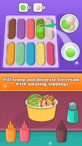 Get anti-stress vides by playing this cooking and restaurant management game. Level up your skills and earn more money by unlocking more ingredients and food items. Play different mini-games like arranging fruits in place, organise the freezer, sort chocolates and toys and make delicious/healthy smoothies for your potential and existing customers. Beat the increasingly challenging levels to unlock more toping and new fillings. Sell chocolates, cookies, donuts, lollypop and candy your customers love. Flavoured icecreams like banana, blueberry, bubble gum, mango, raspberry, vanilla and strawberry will attract dessert loving customers.