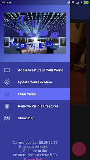 Game Application Creatures in Camera, in which a user can place 2D objects in the real world, and then observe them through the camera.