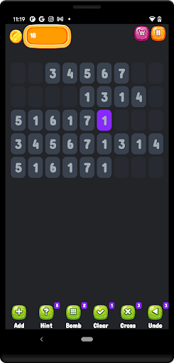 Cross out pars of the same numbers (3-3, 2-2, etc.) or those which add up to 10 (1-9, 3-7, etc.). Two numbers can be crossed by tapping them one by one.