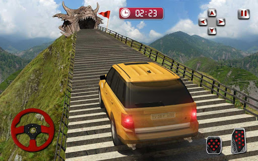 This is the final project offroad of supercar racing challenge over the tail of dragon in exciting luxury car crash simulator 2018. The offroad death race trials awaiting, inspired by the project offroad, impossible stunts driving school rules and top speed breaker challenge reminiscent of extreme car destruction games. In this super car crash simulator 2018 games, there are more than 999 stairs called tianan stairs crash to climb while avoiding luxury car collision for dragon race victory. With a lot of high speed breakers to tackle, only few feet separating your cruiser car simulator game from deadly plunge down the slope. Drive mega ramp stunt car into the uncharted heights of mysterious tianan stairs (also called tianti). At the top there’s a dragon gate awaits - and there’s no platforms for stopping in death race extreme driving games. Steer your mud runner high speed car to rip across curvy road, soar through the speed breaker stairs and head to the tail of dragon’s finish line in car racing games 2018.