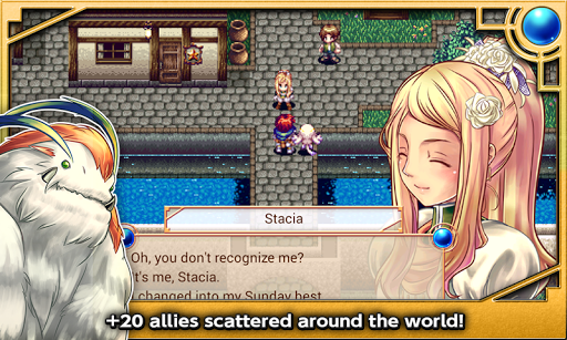 Hero summoned to mysterious world, must protect & lose. Master 20 classes, fill Brave Burst gauge & make friends to progress. $3.99 unlock required.