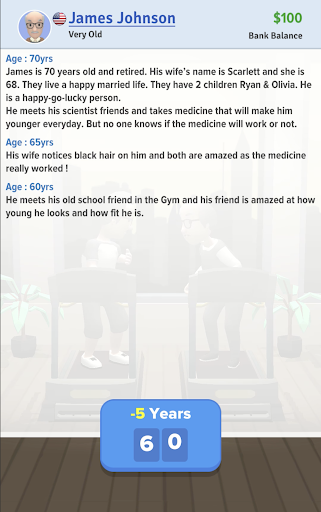 In this unique game you will be faced with various choices on how to cope with your life growing in the reverse !