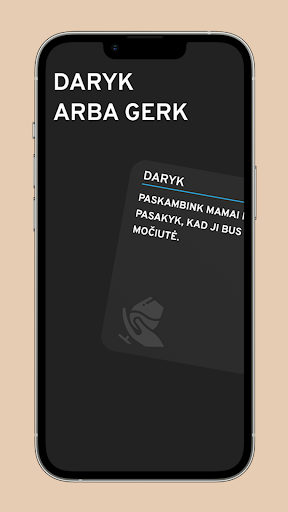 The essence of the game - on the card you will find a task that you must complete, if you refuse to do it, you will have to take a shot (not necessarily alcohol). In the game you will find a wide range of challenges, singing, dancing, tasks for all players, social networks, moments of truth, the funniest stories and many other good cards! On the cards you will find choices such as: answer the truth, exercise courage, or drink.