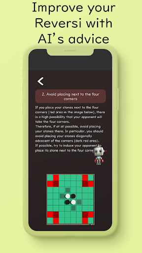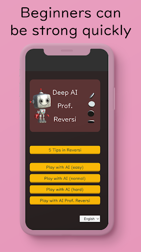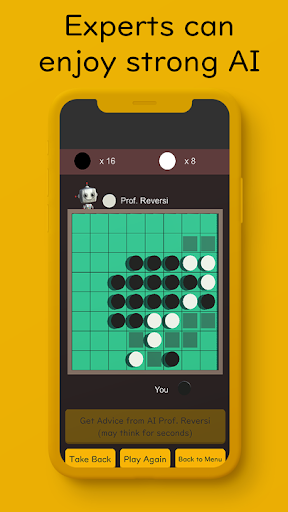 The AI uses state-of-the-art deep learning algorithms. It is quite strong. By playing while receiving advice from Prof. Reversi, even if you are a beginner, you can efficiently strengthen your Reversi skill.