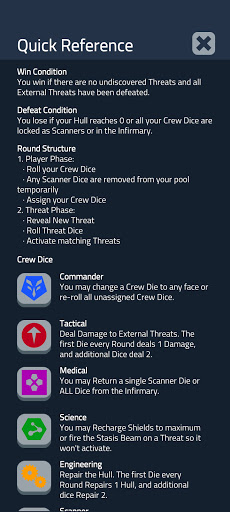 This app is an unofficial fan-made digital adaptation of Deep Space D-6, a fantastic solitaire board game by Tau Leader Games.