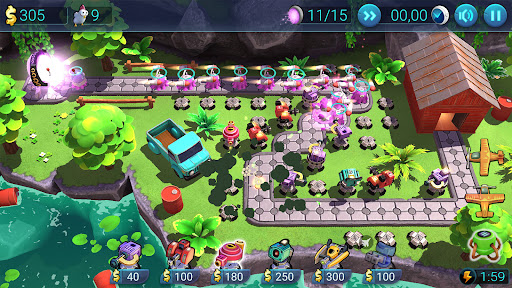 Fun offline strategy arcade game in the genre of Tower Defense, which will please gamers with its stylish, modern, and high-quality graphics, a large number of levels with increasing complexity, simple controls, and funny characters.