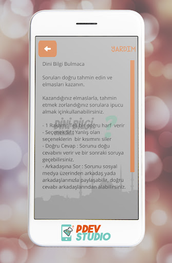 Amacı sorulardaki dini terimleri ve bilgileri tahmin etmedir. Toplam 160 seviyeden (Güncellemeler ile daha fazla soru gelecektir) oluşan oyunu oynarken hem eğlenecek hem de öğrenecek ve bilgilerinizi pekiştireceksiniz. Sorular önemli tarihi olayları içermektedir.