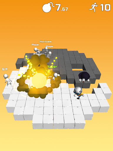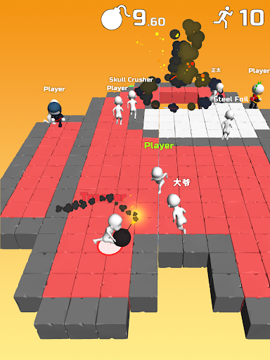 One arena, ten players and only one winner! You have to run on the platform as long as possible not to be caught by competitors with the bomb! But be careful: the bomb can explode and cause big holes in the arena! Jump to avoid them!