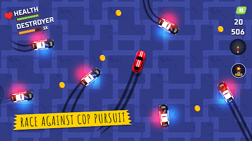 You have given an open ground, and you have to show your best driving and racing car game skills, by drifting and turning left and right to dodge the police cars otherwise they will catch you in this chasing cars games. Earn coins and lots of surprises in this offline games. Collect many coins so that to upgrade your cars and get faster in this cops vs car chasing games. By having coins, you can also buy new improved cars and unlock new levels to add more fun to the chase in this free game. If your car is damaged enough then you will get busted and you will lose the game. Show your car escaping and driving skills in this Simulator game.