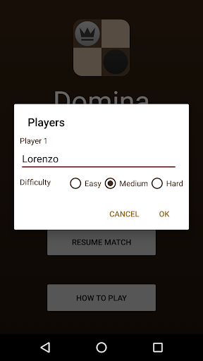 This application allows you to play against your computer, choosing between three levels of difficulty, or another person.