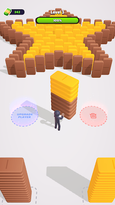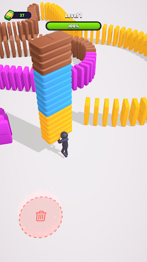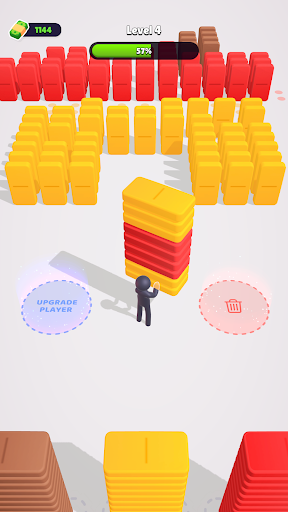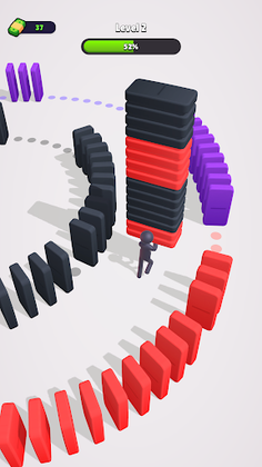 Remember that as soon as you touch them, they fall! The more domino tiles fall the more money you earn and the more you upgrade your stack capacity and speed.
