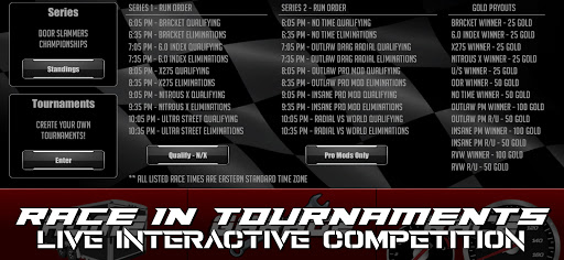 DS2 also offers exciting head-to-head multiplayer action in dedicated rooms for different classes, including: Bracket Racing, Big Wheel Racing, Heads-Up and so much more. Want some friendly competition? Try your luck in our daily top 16 bracket-style tournaments, starting at 6:05 pm EST.