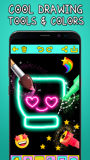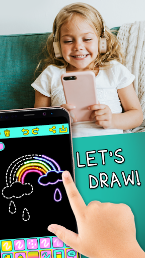 Drawing game for kids with dot tracing worksheets: glow paint, neon colors, draw by finger. Image editor - draw on your photo in Easy kids drawing game!