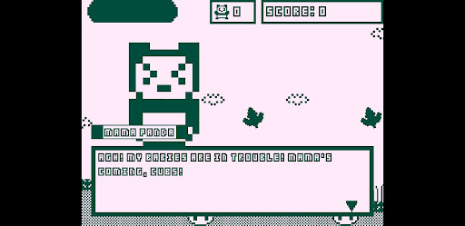 Sprint, leap, and fire your blowpipe as Mother Panda fights against a ruthless group of hunters! Evade the perils of a diverse tropical setting in this classic 1-bit side-scrolling game and test your skills to save each and every baby panda!