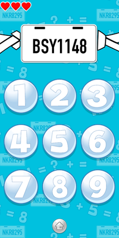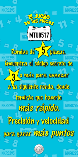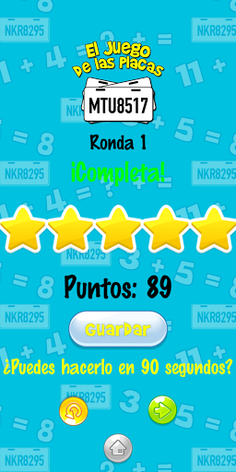 The license plate game consists of identifying a secret code hidden in car license plates, adding the digits that appear on them. Five plates per round, in a maximum of seconds that decreases from 120 seconds in the first round to 5 seconds in the last! You earn points for the number of hits and for the time you have left in each round.