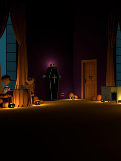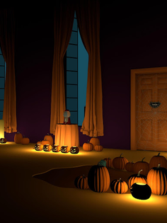 You are in a house where ghosts, pumpkins and witches are lived.