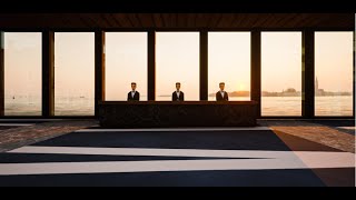 The sound of quiet waves, a balcony overlooking the sunset, the horizon stretching out across the whole window.