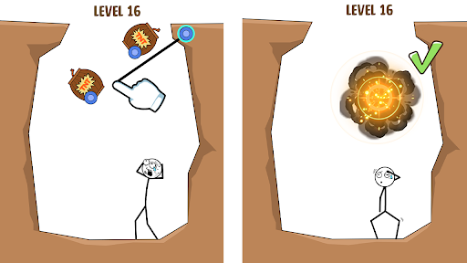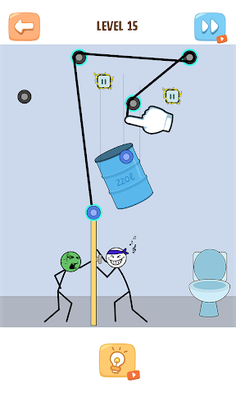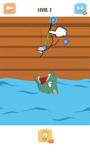 Help him escape a level with the rope and 2 points.