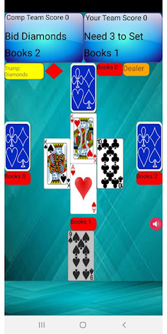 Euchre is a trick taking game with four players in partnerships sitting opposite each other.