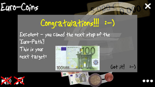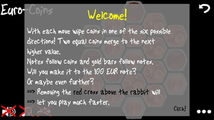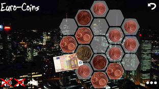 Two equal coins merge to the next higher value. The highest coin value is 2 EUR. If you merge two 2 EUR coins the 5 EUR note will appear. So notes follow coins and later on gold bars follow notes. Will you make it to the 500 EUR note? That is quite hard but possible if you follow the right strategy. Maybe you even make it to the gold bars? If that is possible. Find out how! :-)