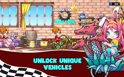Climb hills, jump over obstacles, and speed through winding tracks as you navigate through a variety of environments, from enchanted forests to treacherous mountain ranges. Choose from a range of fantastical vehicles, each with their own unique abilities and upgrades, to help you outpace the competition.
