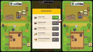 You don't control the fighters. Farmers run through the beds themselves and automatically fight bugs using whatever you sold them. Your task is to pump weapons, improve trade, collect resources and make each next battle bring more gold, resources and crops.