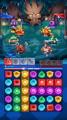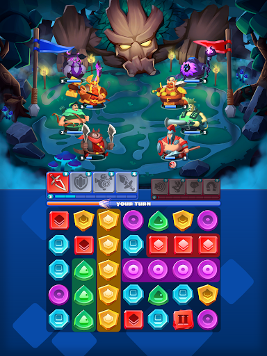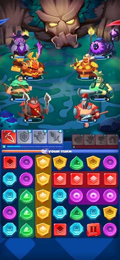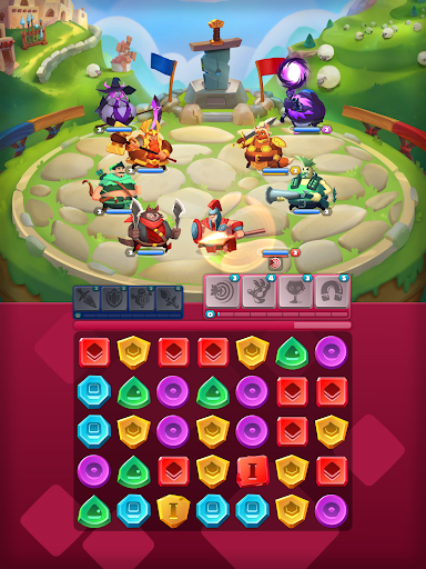 Get ready to experience exhilarating match-3 gameplay, where the objective is to strategically match blocks. Create clusters to charge up your heroes and unleash powerful attacks on enemies. Remember, clusters count, and larger ones guarantee better attacks.