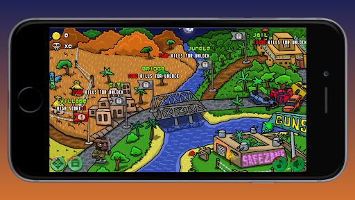 In this game you have to control the player to kill all of the enemies and kill all the incoming monsters towards you so you can clear the level and continue, also you can upgrades your weapons so you can easily get the score and kill the monsters!